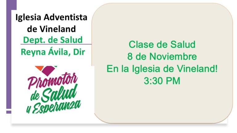 No te pierdas esta charla sobre la salud que tendremos en nuestra iglesia el sábado 8 de noviembre 2025 a las 3:30pm.