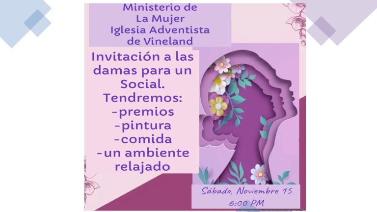 El Ministerio de la mujer de nuestra iglesia te invita al social que tendremos el sábado 15 de noviembre 2025 a las 6:00pm